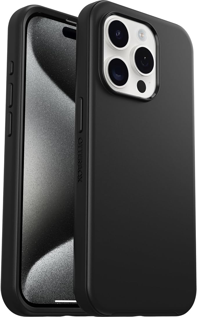 OtterBox iPhone 15 Pro (Only) Symmetry Series Case – BLACK, Snaps to MagSafe, Ultra-Sleek, Raised Edges Protect Camera & Screen