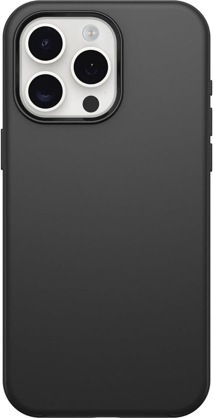OtterBox iPhone 15 Pro MAX (Only) Symmetry Series Case – BLACK, ultra-sleek, wireless charging compatible, raised edges protect camera & screen